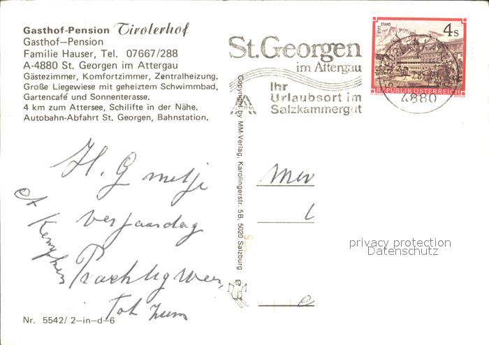 72417672 alte Postkarte St Georgen Attergau Tirolerhof Gasthof Pension Schwimmbad Gastraum Treppenaufgang postalisch gelaufen Erhaltung siehe scans KatCode: 11390315041746