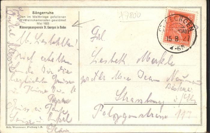 41219681 St Georgen Breisgau Sängerruhe Männergesangsverein Gedenkstätte Vereinskameraden KatCode 11110008311000