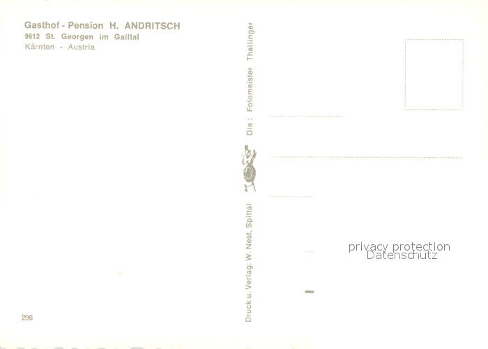 73589065 St Georgen Gailtal Gasthof-Pension H. Andritsch postalisch nicht gelaufen Erhaltung siehe scans [PaolaD17] KatCode: 11390211020719