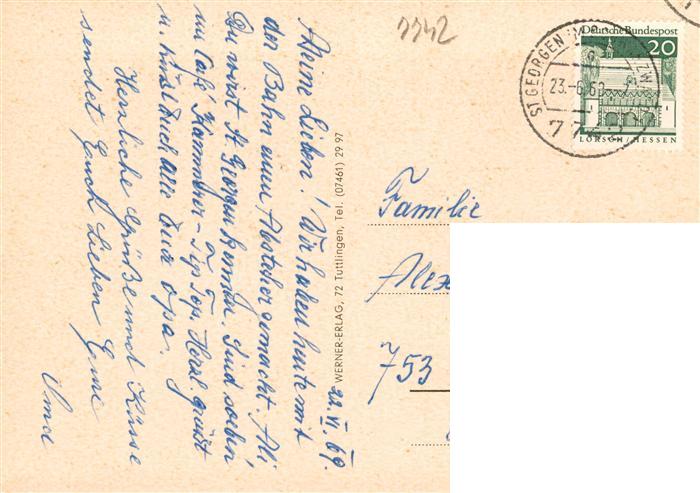 73938253 St Georgen Schwarzwald Brunnen Stadtansichten Schwimmbad Kirche Muehle postalisch gelaufen Erhaltung siehe scans [WerneD78] alte Postkarte Wern Katcode 11110008326052