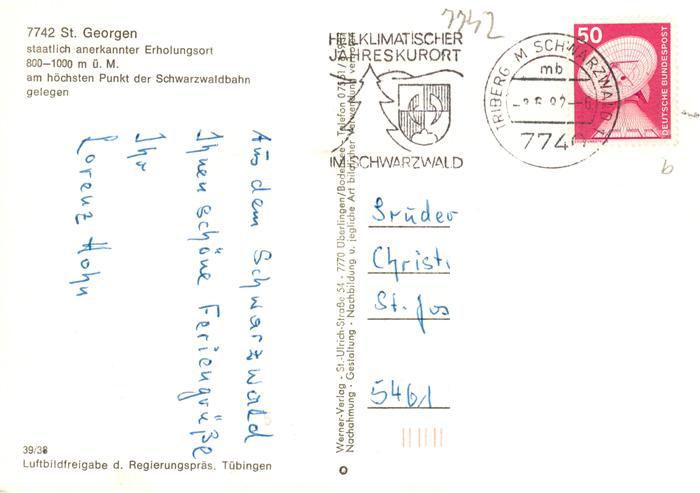 73937610 St Georgen Schwarzwald Fliegeraufnahme postalisch gelaufen Erhaltung siehe scans [WerneD78] alte Postkarte Wern Katcode 11110008326052