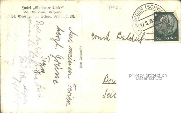 31717194 alte Postkarte St Georgen Schwarzwald Hotel Goldener Adler postalisch gelaufen Erhaltung siehe scans KatCode: 11110008326052