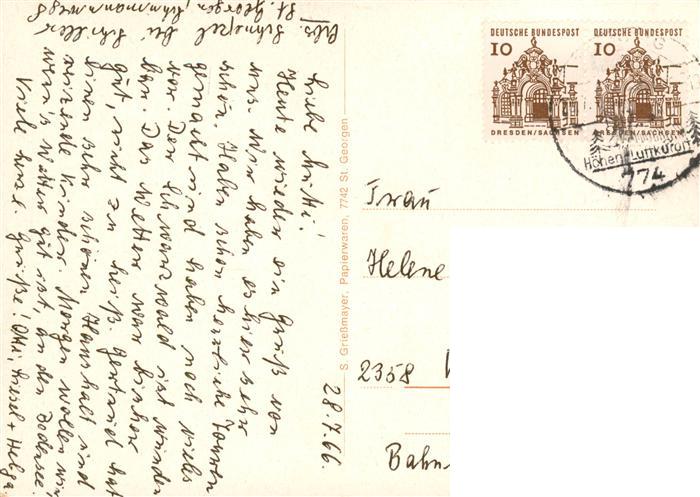 73943821 St Georgen Schwarzwald Marktplatz Klosterweiher Dual Werk Ev Kirche Panorama Kath Kirche Marktplatz OT Rupertsberg postalisch gelaufen Erhaltung siehe scans [WerneD78] alte Postkarte Wern Katcode 11110008326052