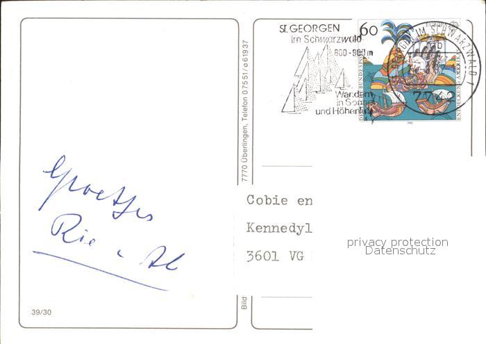 72269393 alte Postkarte St Georgen Schwarzwald Nussbachtal Rathaus Trachtengruppe Krankenhaus postalisch gelaufen Erhaltung siehe scans KatCode: 11110008326052