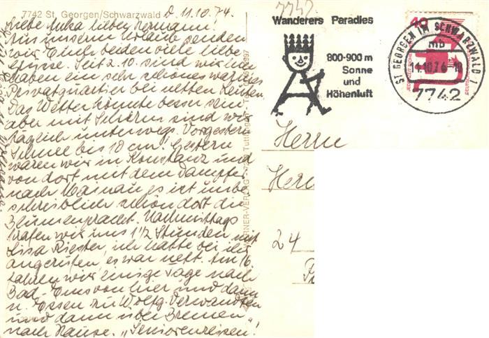 73938252 St Georgen Schwarzwald Panorama postalisch gelaufen Erhaltung siehe scans [WerneD78] alte Postkarte Wern Katcode 11110008326052