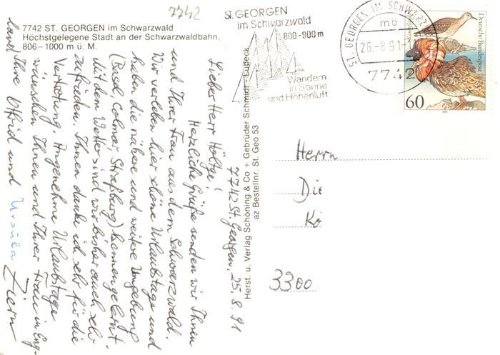 73938245 St Georgen Schwarzwald Stadtansicht postalisch gelaufen Erhaltung siehe scans [WerneD78] alte Postkarte Wern Katcode 11110008326052