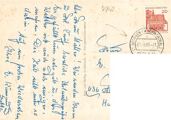 73938236 St Georgen Schwarzwald Stadtansicht postalisch gelaufen Erhaltung siehe scans [WerneD78] alte Postkarte Wern Katcode 11110008326052