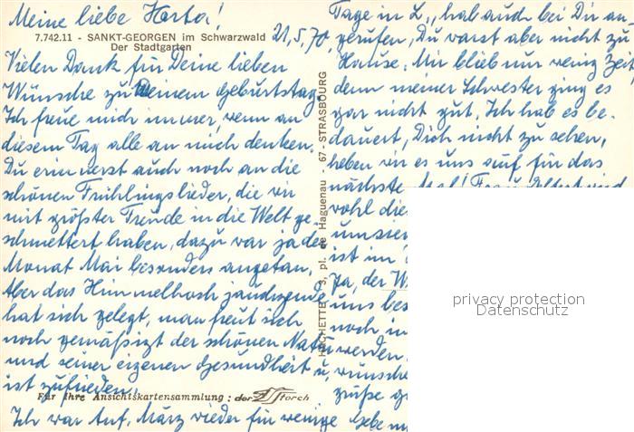 73661197 St Georgen Schwarzwald Stadtgarten postalisch nicht gelaufen Erhaltung siehe scans [FriedD77] KatCode: 11110008326052