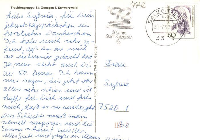 73938230 St Georgen Schwarzwald Trachtengruppe St Georg postalisch gelaufen Erhaltung siehe scans [WerneD78] alte Postkarte Wern Katcode 11110008326052