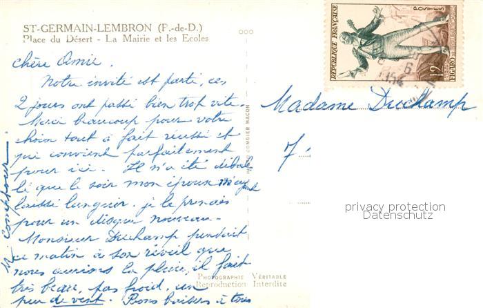 13825567 St-Germain-Lembron Place du Desert La Mairie et les Ecoles postalisch gelaufen Erhaltung siehe scans [FriedD77] carte postale Frie Katcode 11170063363352