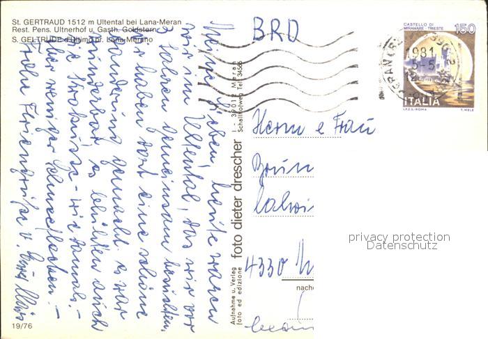 old postcard St Gertraud Ulten Restaurant Pension postalisch gelaufen