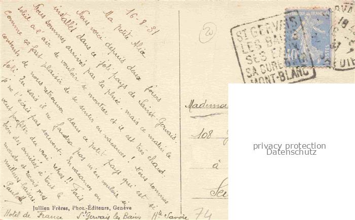 14109132 St-Gervais-les-Bains 74 Haute-Savoie Vue générale et le Mont Juli postalisch gelaufen Erhaltung siehe scans [FriedD77] alte Postkarte Frie Katcode 11170074274236