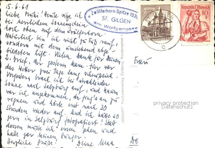 72120082 alte Postkarte St Gilgen Salzkammergut Blick vom Zwoelferhorn Seilbahn postalisch gelaufen KatCode: 11390