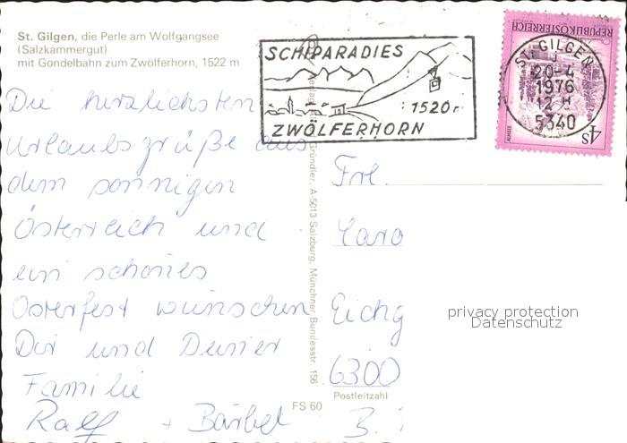 71932177 alte Postkarte St Gilgen Salzkammergut Gesamtansicht Alpenpanorama Bergbahn postalisch gelaufen Erhaltung siehe scans KatCode: 11390