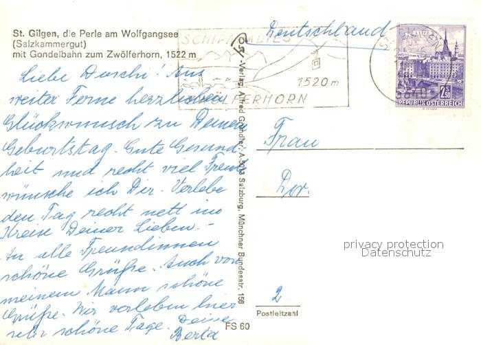 73134287 alte Postkarte St Gilgen Salzkammergut Gondelbahn Zwoelferhorn postalisch gelaufen Erhaltung siehe scans [NatalD47] KatCode: 11390