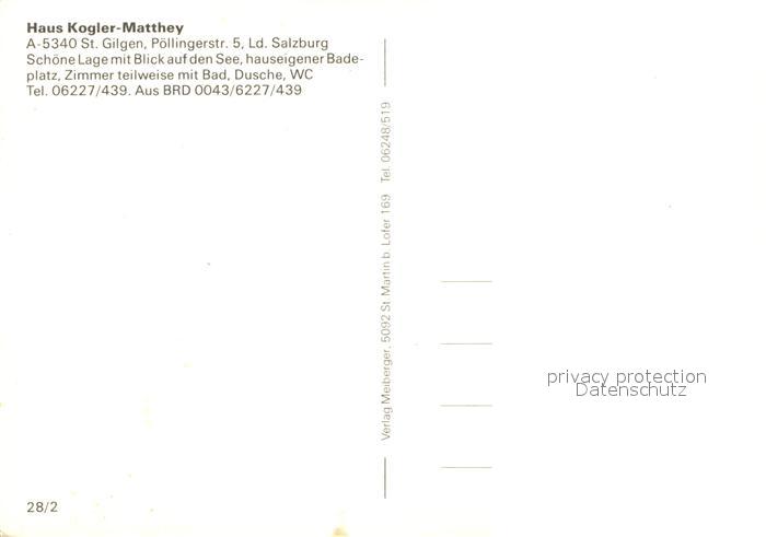 13220485 St Gilgen Salzkammergut Haus Kogler Matthey postalisch nicht gelaufen Erhaltung siehe scans [LiesaD40] KatCode: 11390
