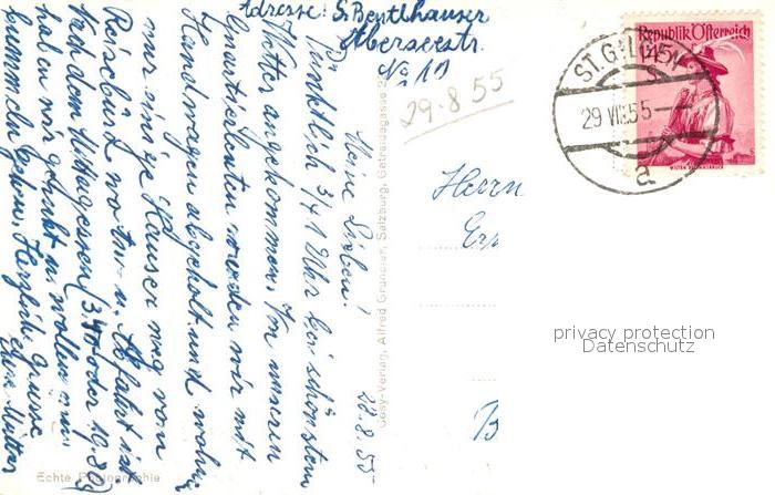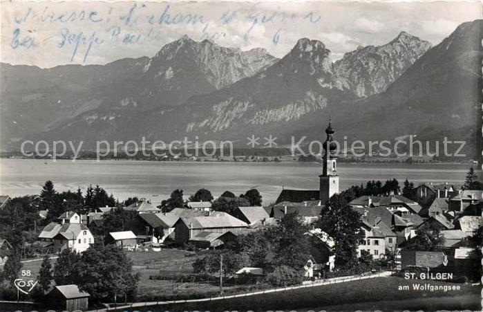73142939 alte Postkarte St Gilgen Salzkammergut Ortsansicht mit Kirche Alpenpanorama postalisch gelaufen Erhaltung siehe scans [FriedD77] KatCode: 11390