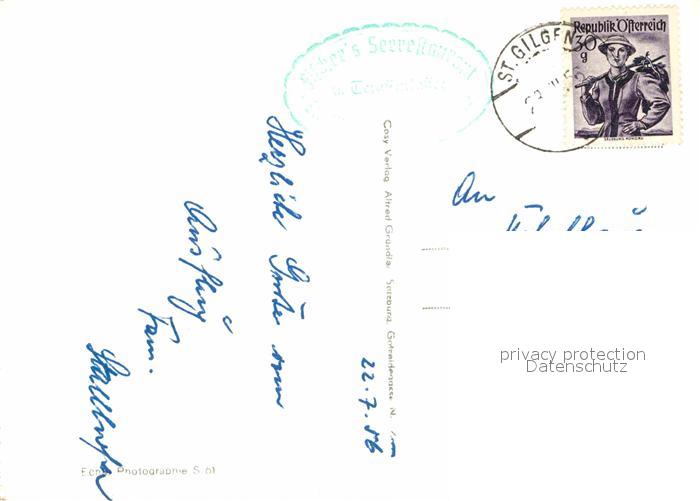72825146 alte Postkarte St Gilgen Salzkammergut Panorama Statue Ochsenkreuz Krottensee Schafberg Gasthof postalisch gelaufen Erhaltung siehe scans [FriedD77] KatCode: 11390