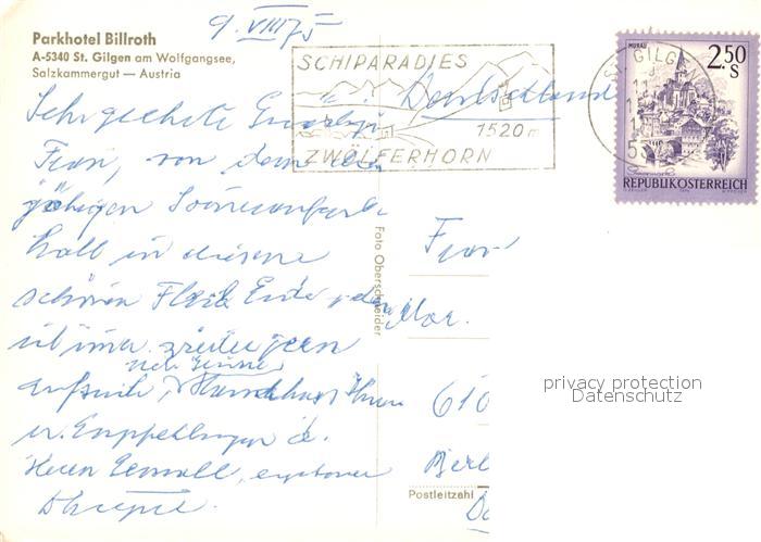73326540 alte Postkarte St Gilgen Salzkammergut Parkhotel Billroth Garten Liegewiese postalisch gelaufen Erhaltung siehe scans [FriedD77] KatCode: 11390
