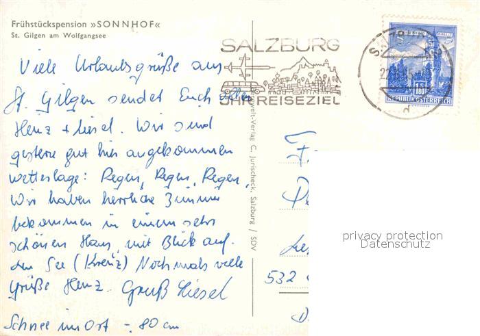 72755484 alte Postkarte St Gilgen Salzkammergut Pension Sonnhof postalisch gelaufen Erhaltung siehe scans [WerneD78] KatCode: 11390