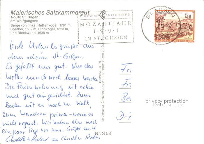 72436355 alte Postkarte St Gilgen Salzkammergut Rettenkogel Rinnkogel Bleckwand postalisch gelaufen Erhaltung siehe scans KatCode: 11390