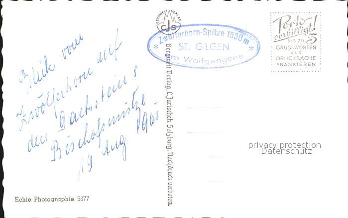 72570490 alte Postkarte St Gilgen Salzkammergut Zwoelferhorn Dachstein postalisch gelaufen Erhaltung siehe scans [AndreD76] KatCode: 11390