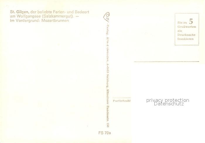 73591786 St Gilgen Wolfgangsee Ortsmotiv Mozartbrunnen Gasthof zur Post postalisch nicht gelaufen Erhaltung siehe scans [FriedD77] KatCode: 11390