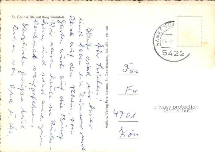 72071790 alte Postkarte St Goar am Rhein mit Burg Rheinfels Schiffe postalisch gelaufen Erhaltung siehe scans KatCode: 11110007140133