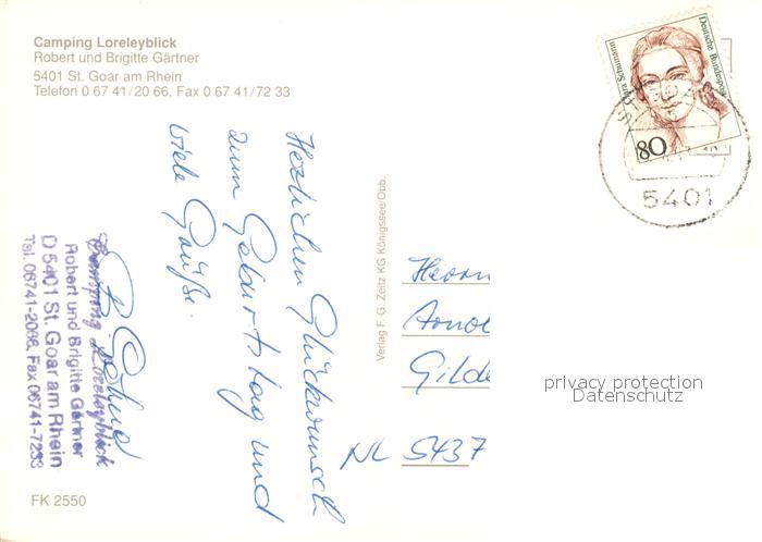 73311365 alte Postkarte St Goar Camping Loreleyblick postalisch gelaufen Erhaltung siehe scans [KathaD81] KatCode: 11110007140133