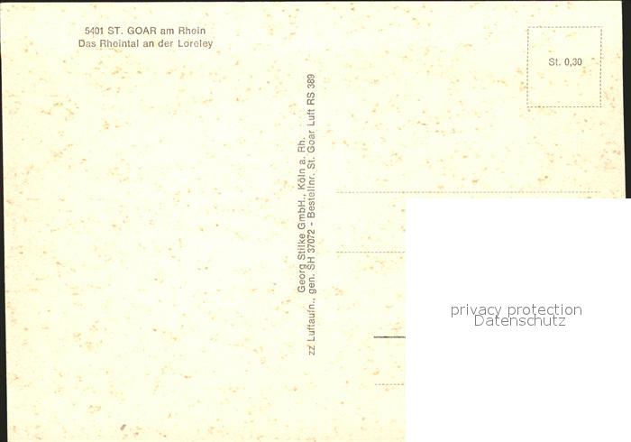 71952559 St Goar Fliegeraufnahme Rheintal und Loreley postalisch nicht gelaufen Erhaltung siehe scans KatCode: 11110007140133