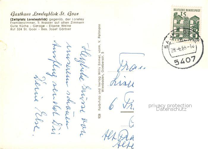 73041888 alte Postkarte St Goar Gasthaus Loreleyblick Rheinpartie postalisch gelaufen Erhaltung siehe scans [WerneD78] KatCode: 11110007140133