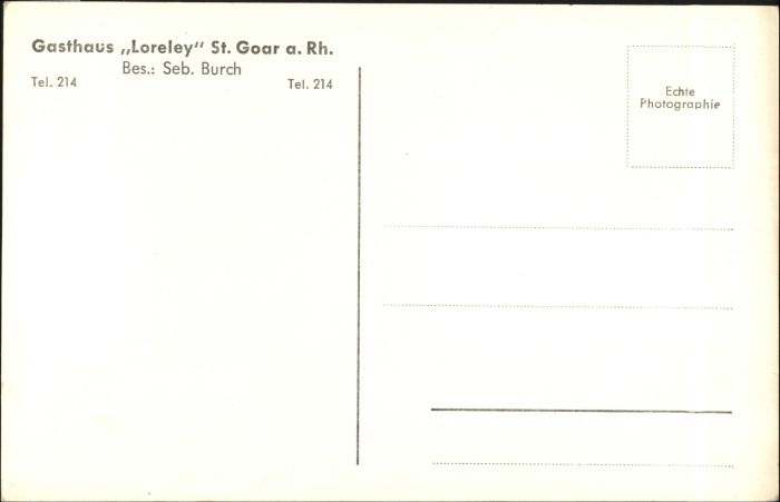 30727600 St Goar Gasthaus zur Loreley postalisch nicht gelaufen KatCode: 11110007140133