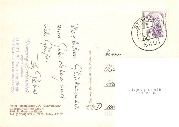 73020243 alte Postkarte St Goar Hotel Loreleyblick postalisch gelaufen Erhaltung siehe scans [NatalD47] KatCode: 11110007140133