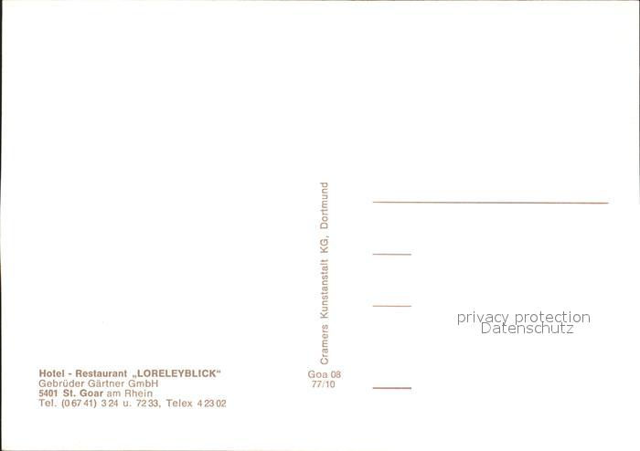 72274621 St Goar Hotel-Restaurant Loreleyblick postalisch nicht gelaufen Erhaltung siehe scans KatCode: 11110007140133
