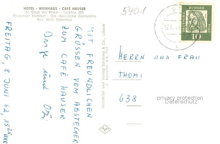 73749466 alte Postkarte St Goar Hotel Weinhaus Cafe Hauser postalisch gelaufen Erhaltung siehe scans [WerneD78] KatCode: 11110007140133