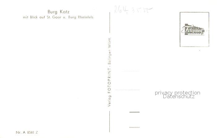 73810759 St Goar Rhein Burg Katz mit Burg Rheinfels mit Blick auf St Goar postalisch nicht gelaufen Erhaltung siehe scans [WerneD78] Wern Katcode 11110007140133