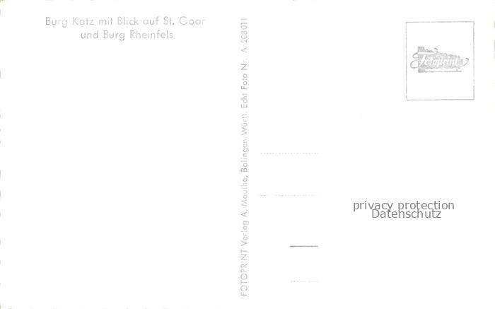 74122256 St Goar Rhein Fliegeraufnahme mit Burg Katz Blick auf St Goar und Burg Rheinfels postalisch nicht gelaufen Erhaltung siehe scans [WerneD78] KatCode: 11110007140133