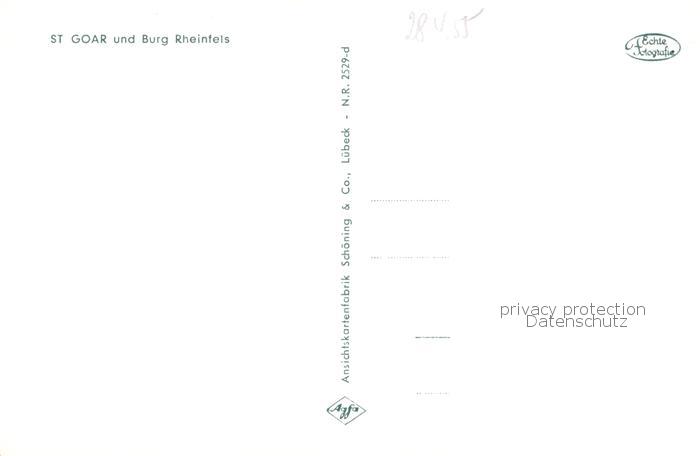 73810757 St Goar Rhein mit Burg Rheinfels postalisch nicht gelaufen Erhaltung siehe scans [WerneD78] Wern Katcode 11110007140133