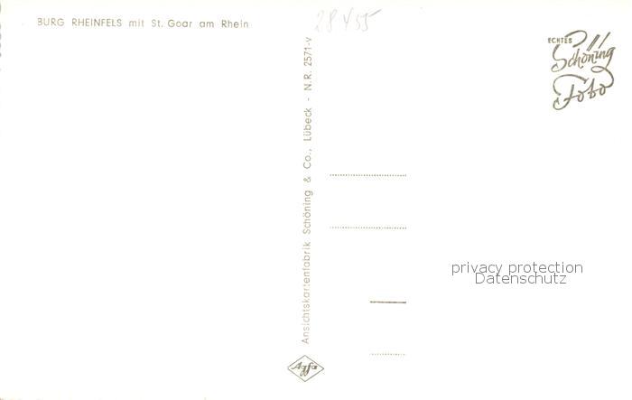 73810760 St Goar Rhein mit Burg Rheinfels postalisch nicht gelaufen Erhaltung siehe scans [WerneD78] Wern Katcode 11110007140133