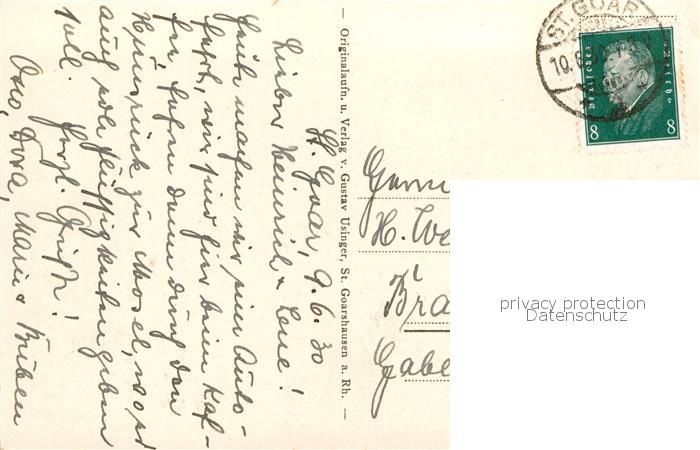 73810754 St Goar Rhein Ruine Rheinfels postalisch gelaufen Erhaltung siehe scans [WerneD78] alte Postkarte Wern Katcode 11110007140133