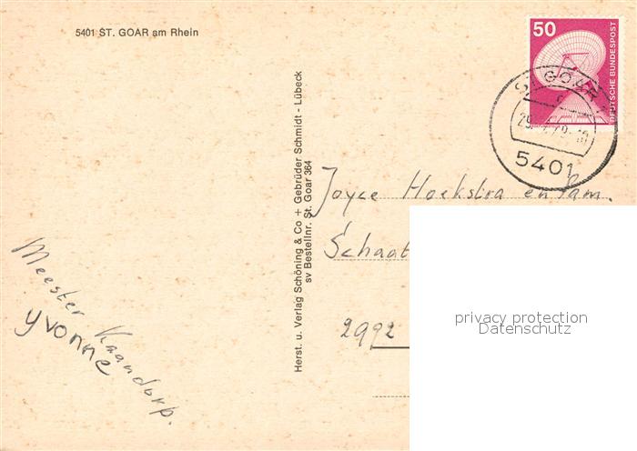 73308217 alte Postkarte St Goar Rheinpartie Bootssteg postalisch gelaufen Erhaltung siehe scans [LiesaD40] KatCode: 11110007140133