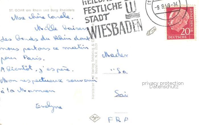 73331188 alte Postkarte St Goar Rheinpartie mit Burg Rheinfels postalisch gelaufen Erhaltung siehe scans [WerneD78] KatCode: 11110007140133