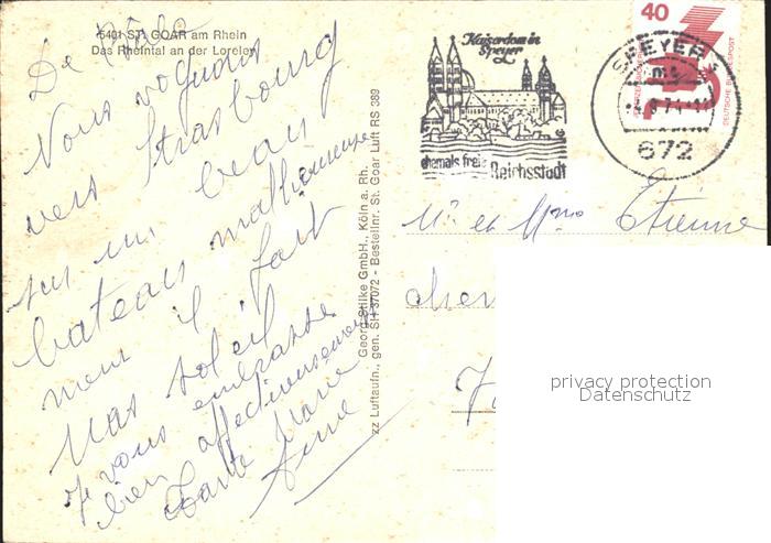 72108324 alte Postkarte St Goar Rheintal an der Loreley Fliegeraufnahme postalisch gelaufen KatCode: 11110007140133