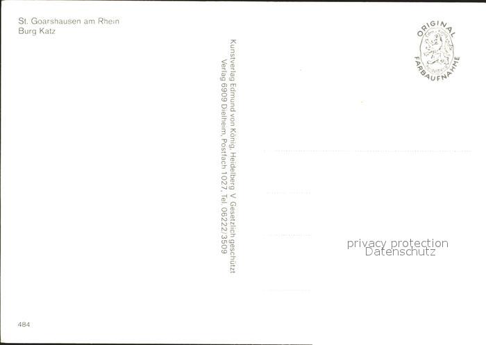 72222057 St Goarshausen Burg Katz postalisch nicht gelaufen Erhaltung siehe scans KatCode: 11110007141121