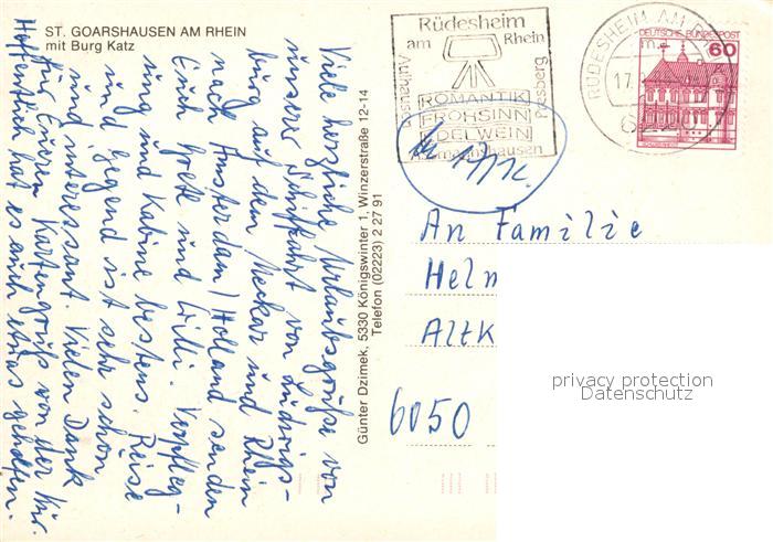 73260060 alte Postkarte St Goarshausen Burg Katz postalisch gelaufen Erhaltung siehe scans [NatalD47] KatCode: 11110007141121
