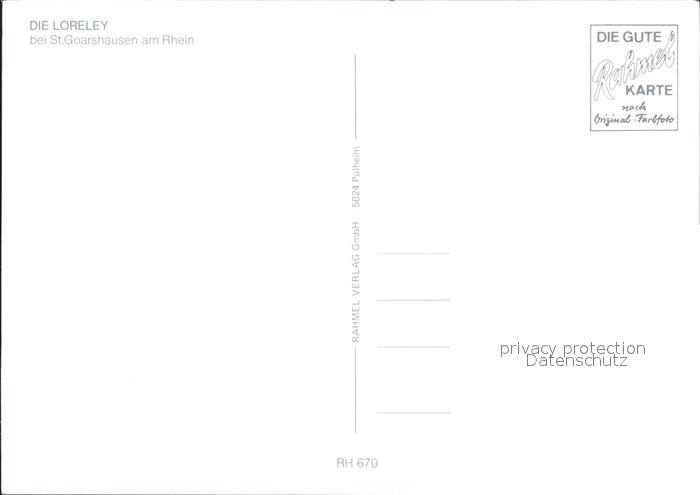 72313515 St Goarshausen Die Loreley Gedicht postalisch nicht gelaufen Erhaltung siehe scans KatCode: 11110007141121