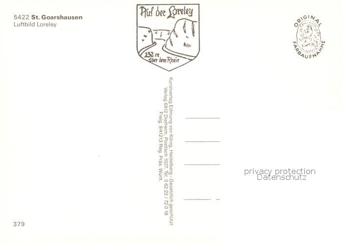 73095914 St Goarshausen Fliegeraufnahme Loreley postalisch nicht gelaufen Erhaltung siehe scans [NatalD47] KatCode: 11110007141121