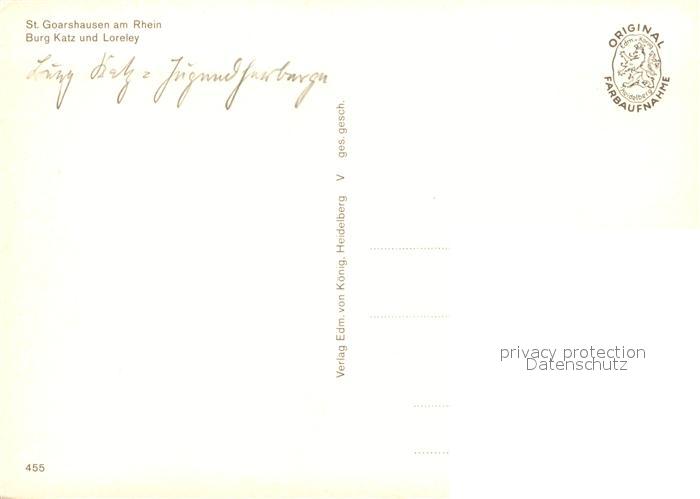 73226064 St Goarshausen Fliegeraufnahme mit Burg Katz und Loreley postalisch nicht gelaufen Erhaltung siehe scans [LiesaD40] KatCode: 11110007141121
