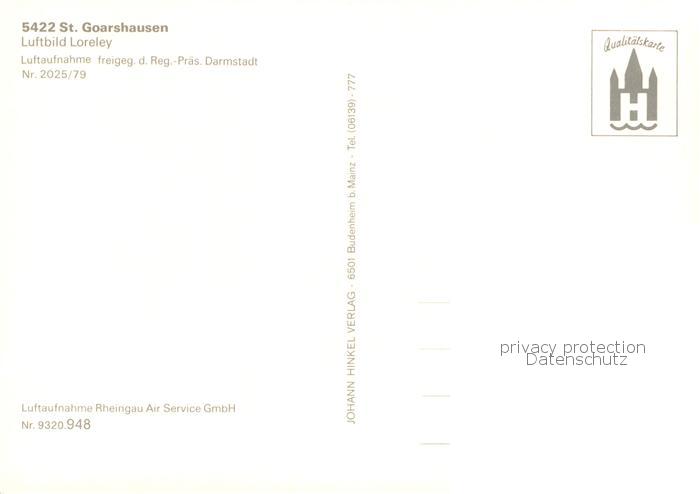 73759893 St Goarshausen Fliegeraufnahme mit der Loreley postalisch nicht gelaufen Erhaltung siehe scans [FriedD77] KatCode: 11110007141121