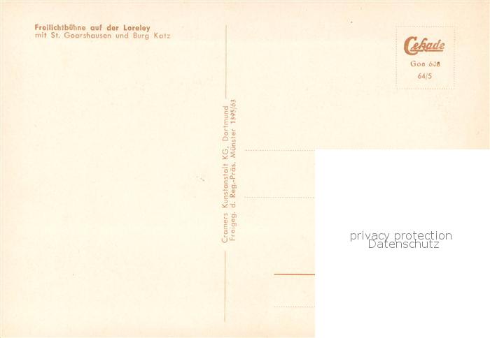 73752449 St Goarshausen Freilichtbuehne auf der Loreley mit Burg Katz Fliegeraufnahme postalisch nicht gelaufen Erhaltung siehe scans [WerneD78] KatCode: 11110007141121